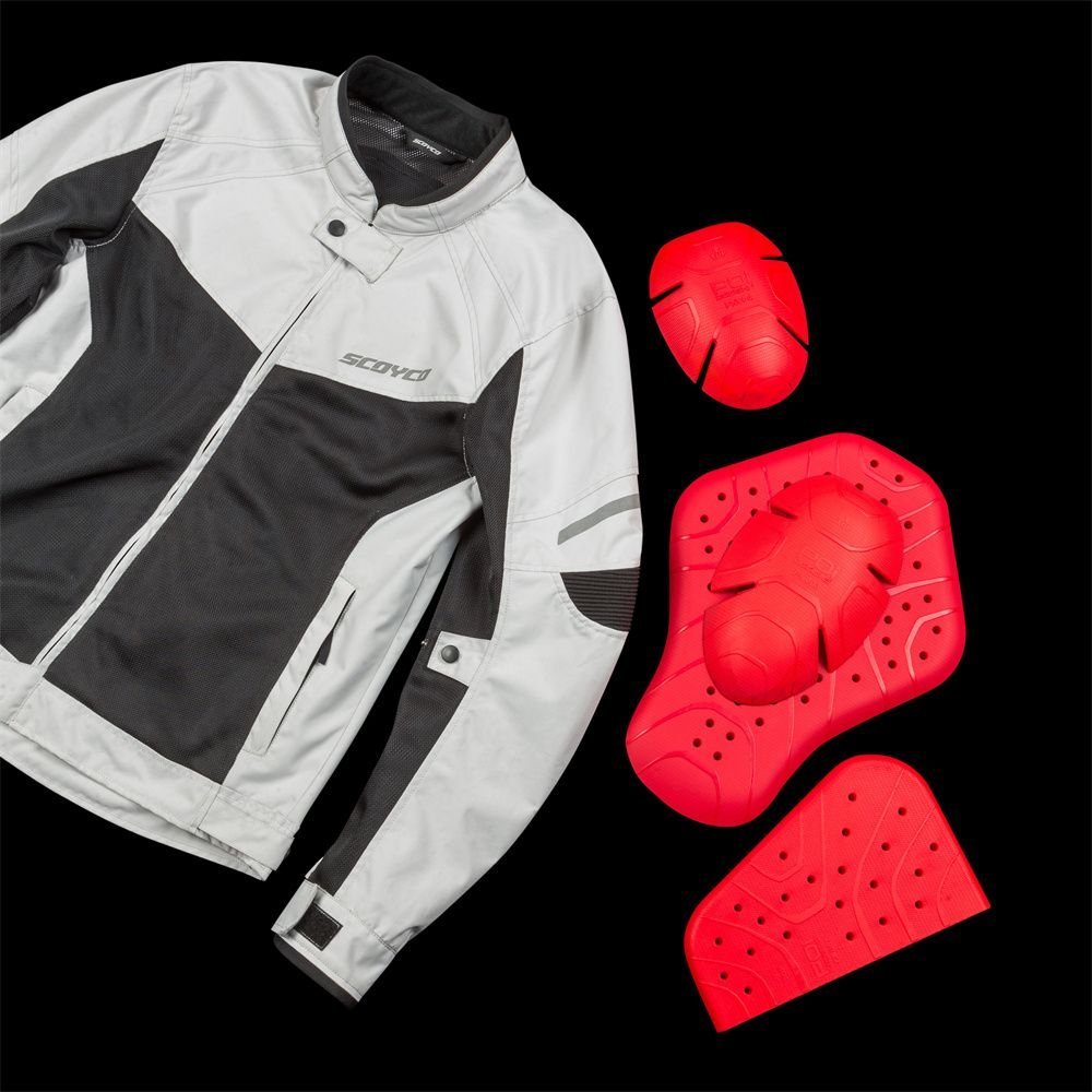 Перша дійсно достойна куртка Скойко з сертифікованим захистом. Повний комплект (плечі, лікті, спина) + груди EN1621-1. Повністю літня сітчаста курта на температуру +18 і вище